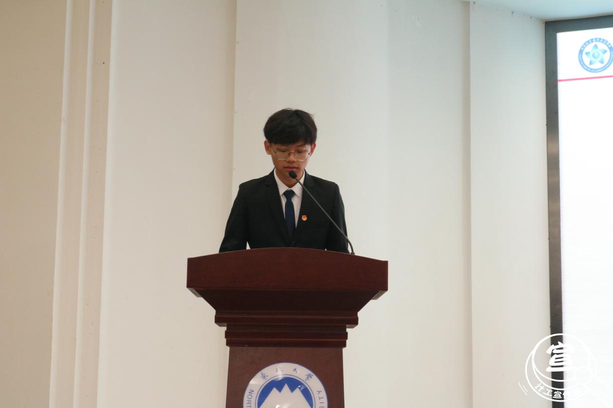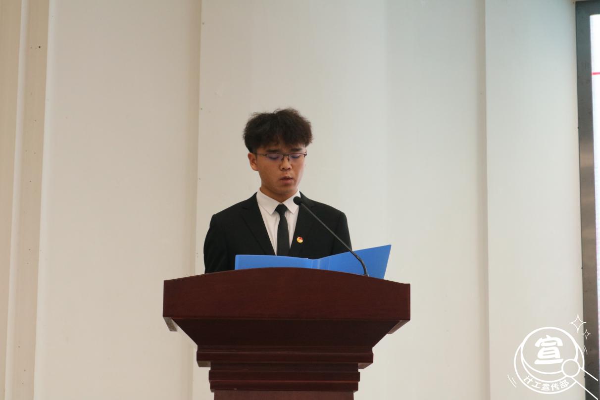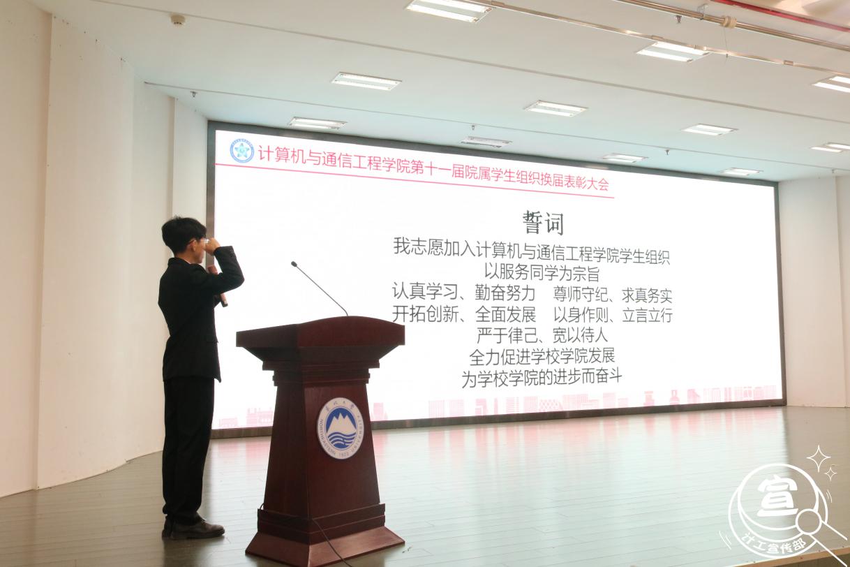 之后由第十一届学生会轮值主席朱杨带领第十一届院属学生组织全体成员进行庄严宣誓,声音洪亮,铿锵有力。