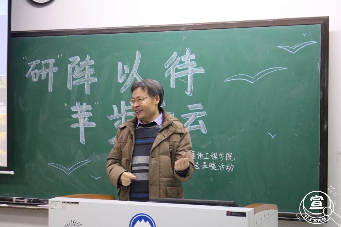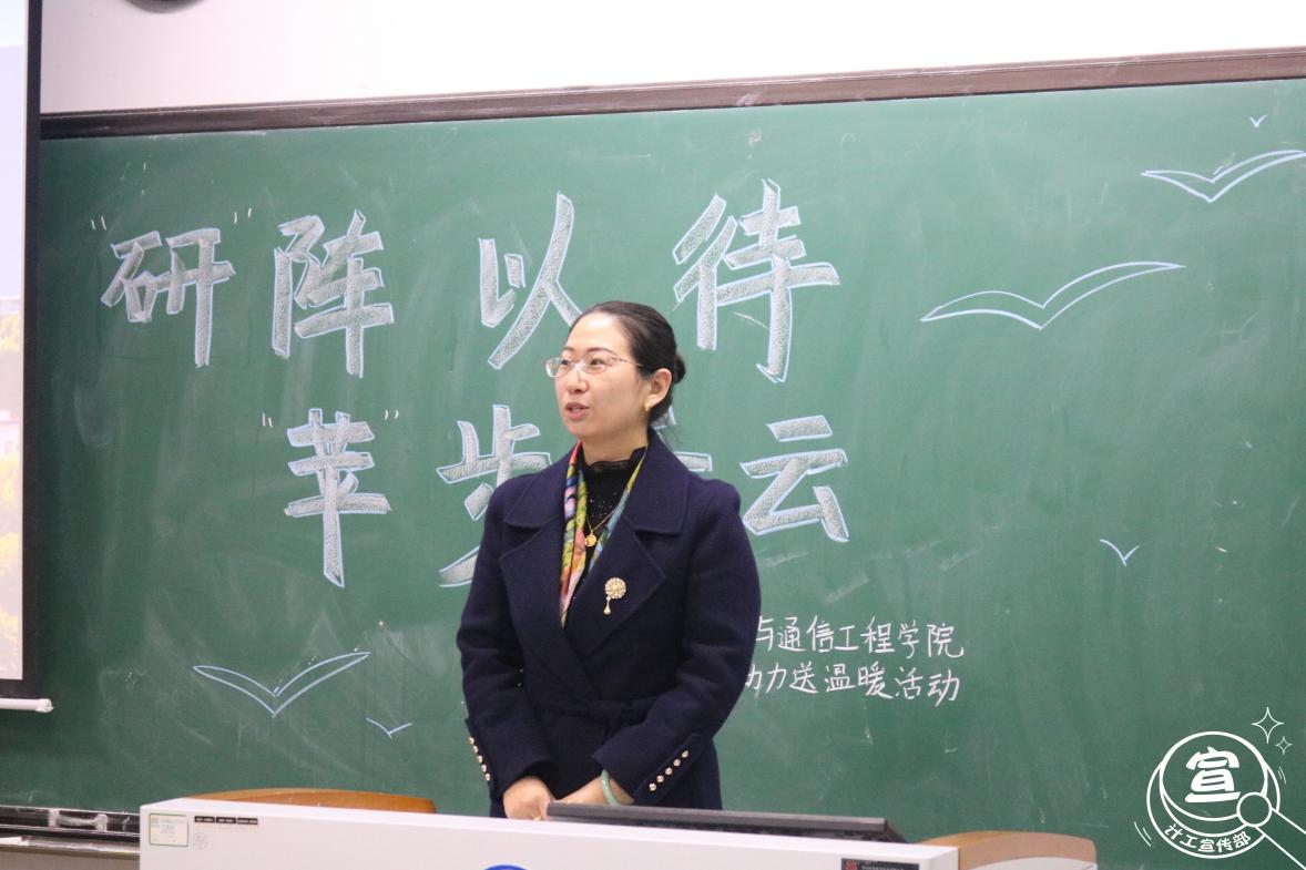 考研在即,为缓解同学们备考时的紧张情绪,向他们送上最美好的考研祝福,12月8日,米乐官网特于工学馆231教室举办“研”阵以待,“苹”步青云考研助力送温暖活动。出席本次活动的有院长刘杰民,副院长刘志刚,党委副书记兼副院长王雪佳,学生办公室主任陈晶晶,2018级电子信息类辅导员庄天宇以及即将奔赴考研战场的全体同学。