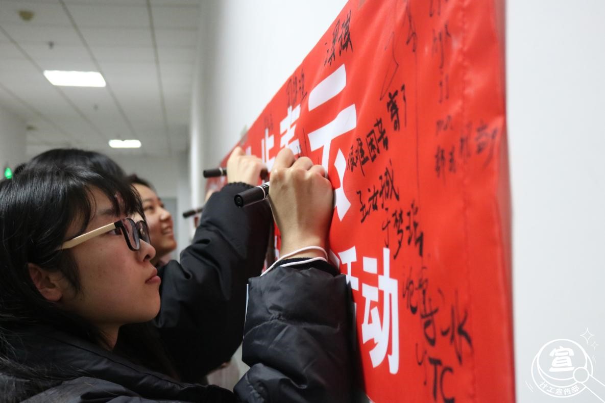 活动在全体学子们“金榜题名,考研必胜”铿锵有力的誓词中接近尾声。最后,即将奔赴考研战场的同学们在场外的横幅上签名留念,坚定有力的落笔充分展现了米乐官网学子考研必胜的决心。