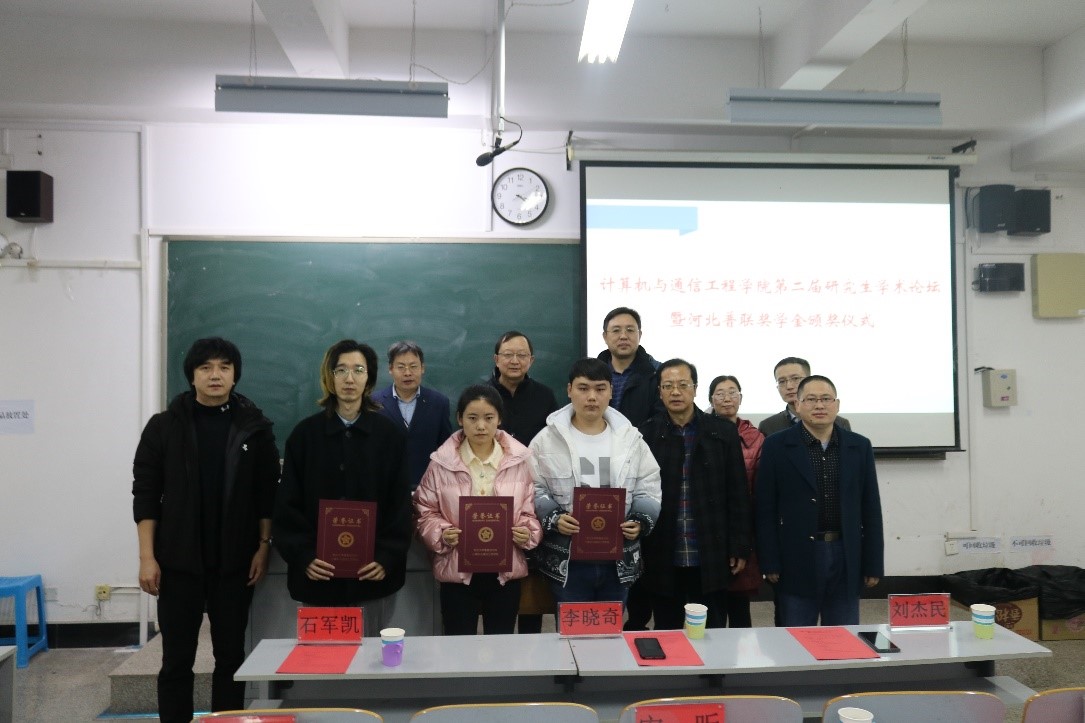 刘志刚首先介绍了第二届研究生学术论坛的举办形式及具体安排,并宣读2021年河北普联奖学金获奖研究生名单。李晓奇为获奖研究生颁发获奖证书。