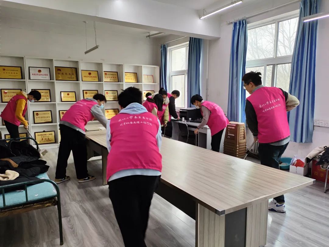 在仪式结束后,计工学院的各班学生积极响应号召在生活委员带领下进行了志愿劳动,对学校的基础楼和宿舍楼进行了清理打扫,以保持学校的干净整洁;对工学馆没人擦除的黑板板书进行清理;去往各宿舍楼检查水房及卫生间水龙头渗水损坏情况,砺行节水。
