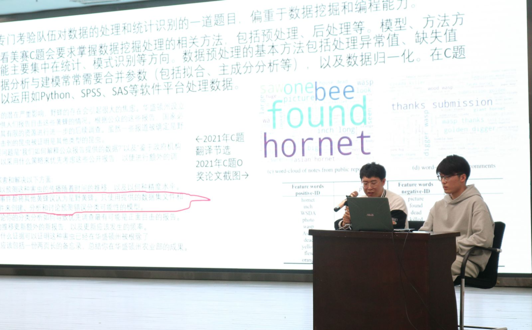 交流会过程中,参加本次大会的优秀学长学姐们从前期组队到中期学习,从题型讲解到论文撰写为参会同学进行了详细讲解。除此之外,又结合今年例题,通过实战题目讲解的形式,让所有参会学生切实了解到数学建模大赛的各个流程与诀窍。
