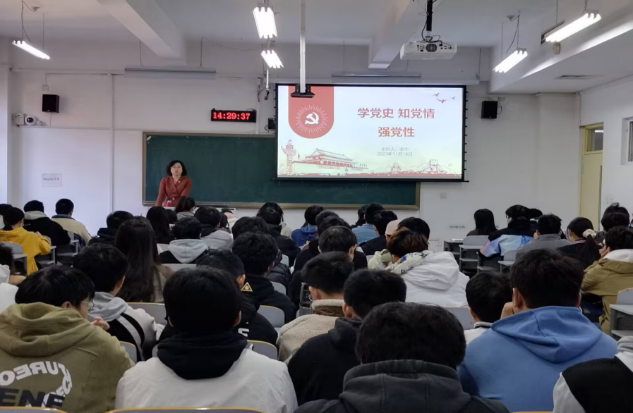 李杰以《学党史 知党情 强党性》为主题,阐明了学党史、知党情的重大意义,并引用习近平总书记在党史学习教育动员大会上的讲话,激励同学们用党的光荣传统和优良作风坚定信念、凝聚力量,用党的实践创造和历史经验启迪智慧、砥砺品格;随后,李杰从中国共产党的成立讲起,将党的光辉历程娓娓道来。从党的一大、二大、北伐战争到红军长征、遵义会议,中国共产党从青涩一步步走向成熟;从百团大战、三大战役、党的七大到中华人民共和国成立、社会主义制度确立等,中国共产党团结带领全国各族人民,筚路蓝缕,披荆斩棘,夺取了一个又一个伟大胜利。
