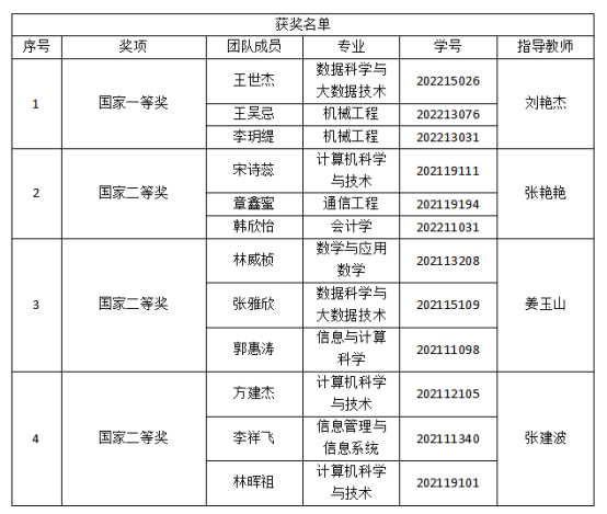 近日,2023年“高教社杯”全国大学生数学建模竞赛获奖名单公布,我校学生再创佳绩,荣获全国一等奖1项、二等奖3项。米乐官网学生王吴忌(现已转专业至2022计算机科学与技术专业)喜获一等奖,方建杰喜获二等奖。