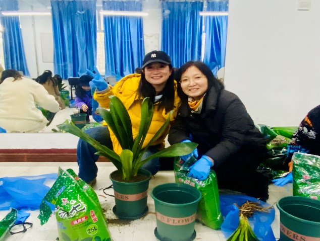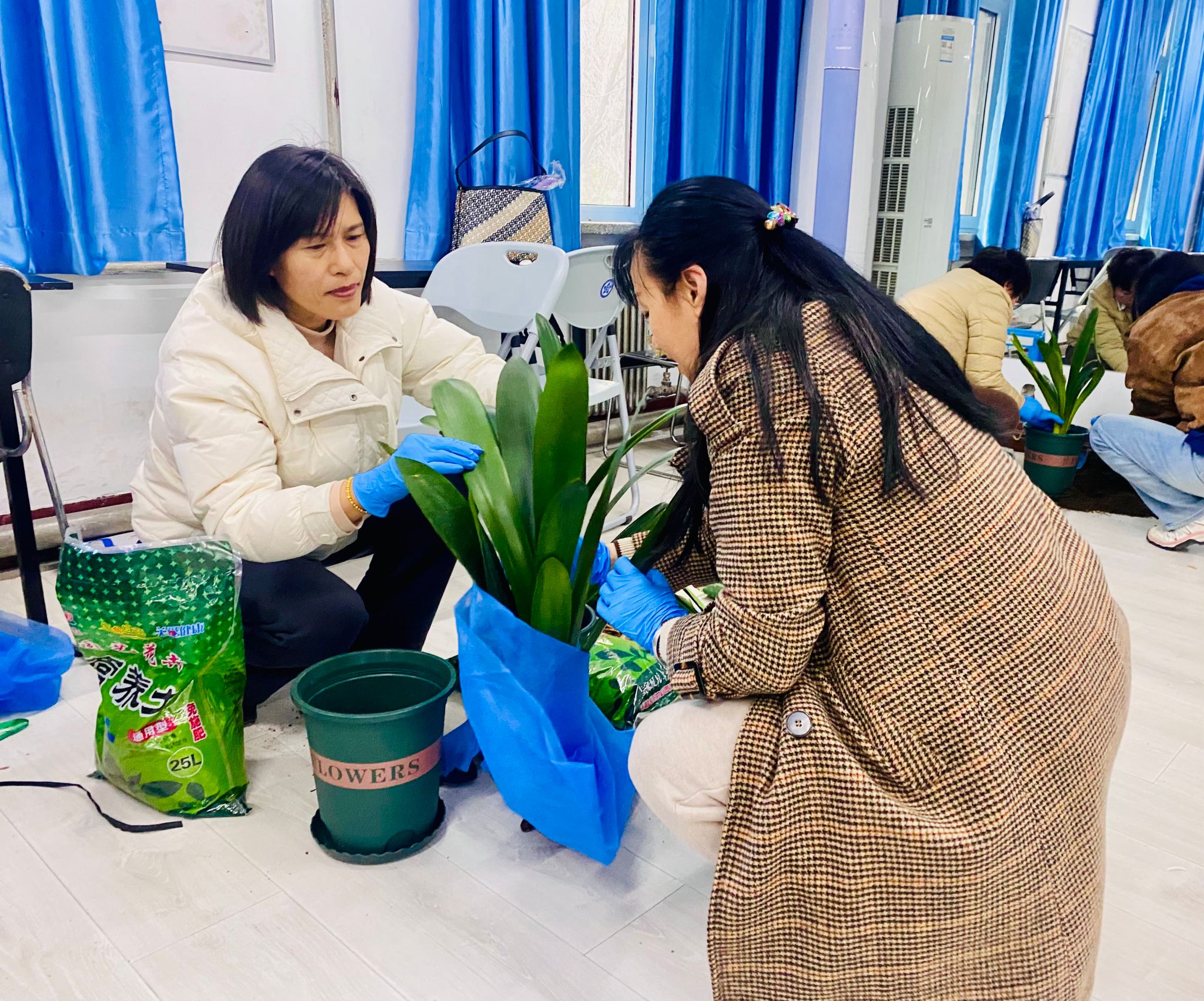 健步走活动落下帷幕后,女教职工们热情不减,一同来到手工盆栽种植活动现场。在这里,大家默契分工、协作有序:有人专注挖土,有人小心栽种,有人仔细浇水 ,现场一片热火朝天。活动中,欢声笑语此起彼伏,在大家的精心呵护下,一株株鲜花稳稳扎根花盆。此次活动,不仅让女教职工们沉浸于节日的欢快氛围中,更承载着她们对美好生活的憧憬与期待。