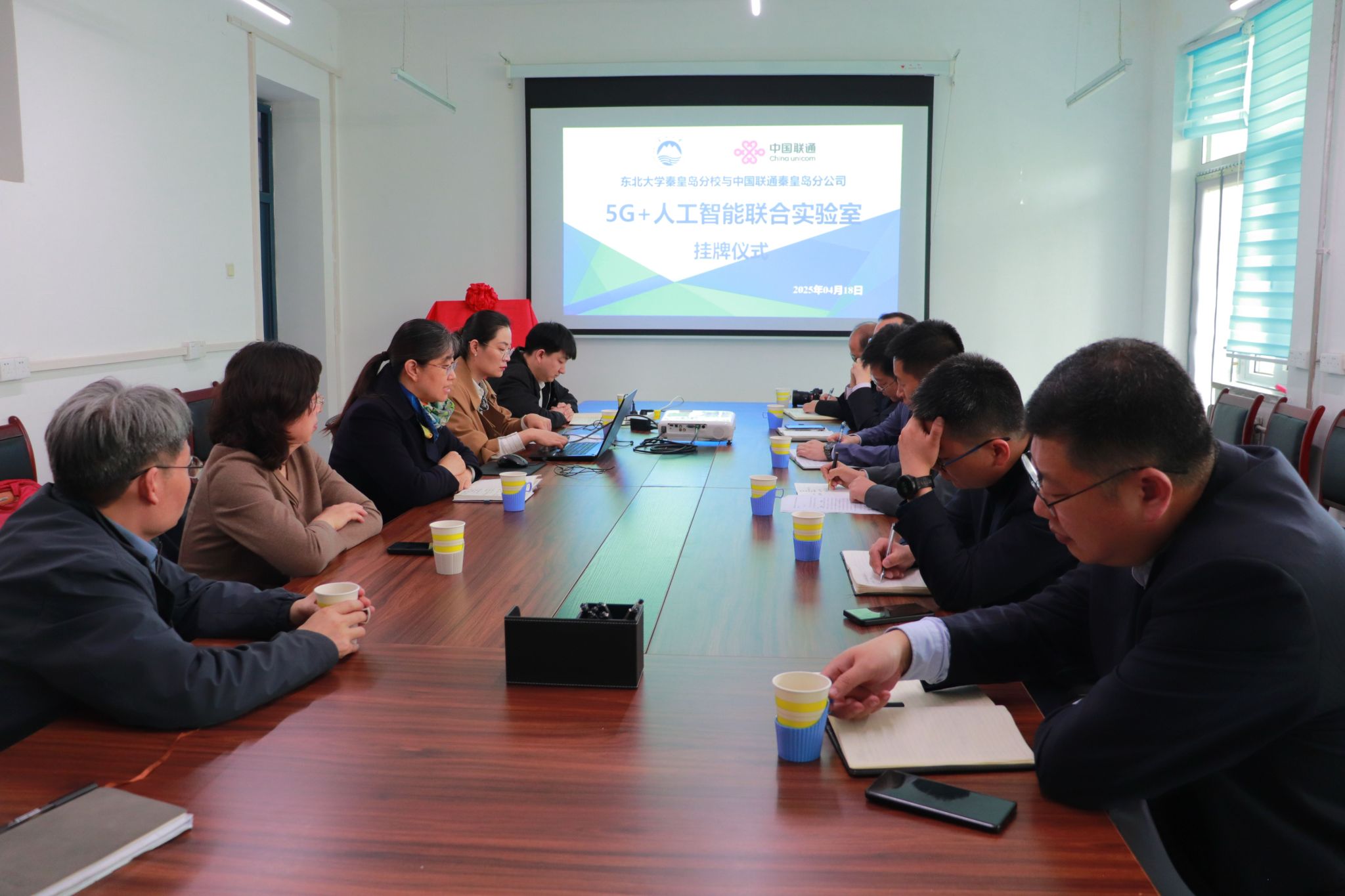 4月18日,中国联通秦皇岛分公司与计工学院“5G+人工智能联合实验室”挂牌仪式在基础楼214会议室举行,标志着双方在5G技术与人工智能领域的深度融合迈出了坚实一步,此次合作将为区域科技创新与产业升级注入新动能。中国联通秦皇岛分公司副总经理张柏林,工业物联网中心经理张远,计工学院院长宋昕,院党委书记李杰等参与了挂牌仪式。