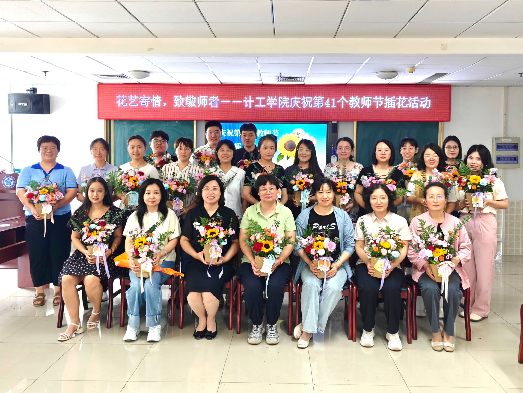秋高气爽,金桂飘香。为庆祝第41个教师节,丰富学院教职工的精神文化生活,陶冶情操,提升艺术修养,9月10日,MILE米乐集团分工会在综合楼1227会议室精心组织举办了“花艺寄情,致敬师者”主题创意插花活动。共有26位教职工参加本次活动。