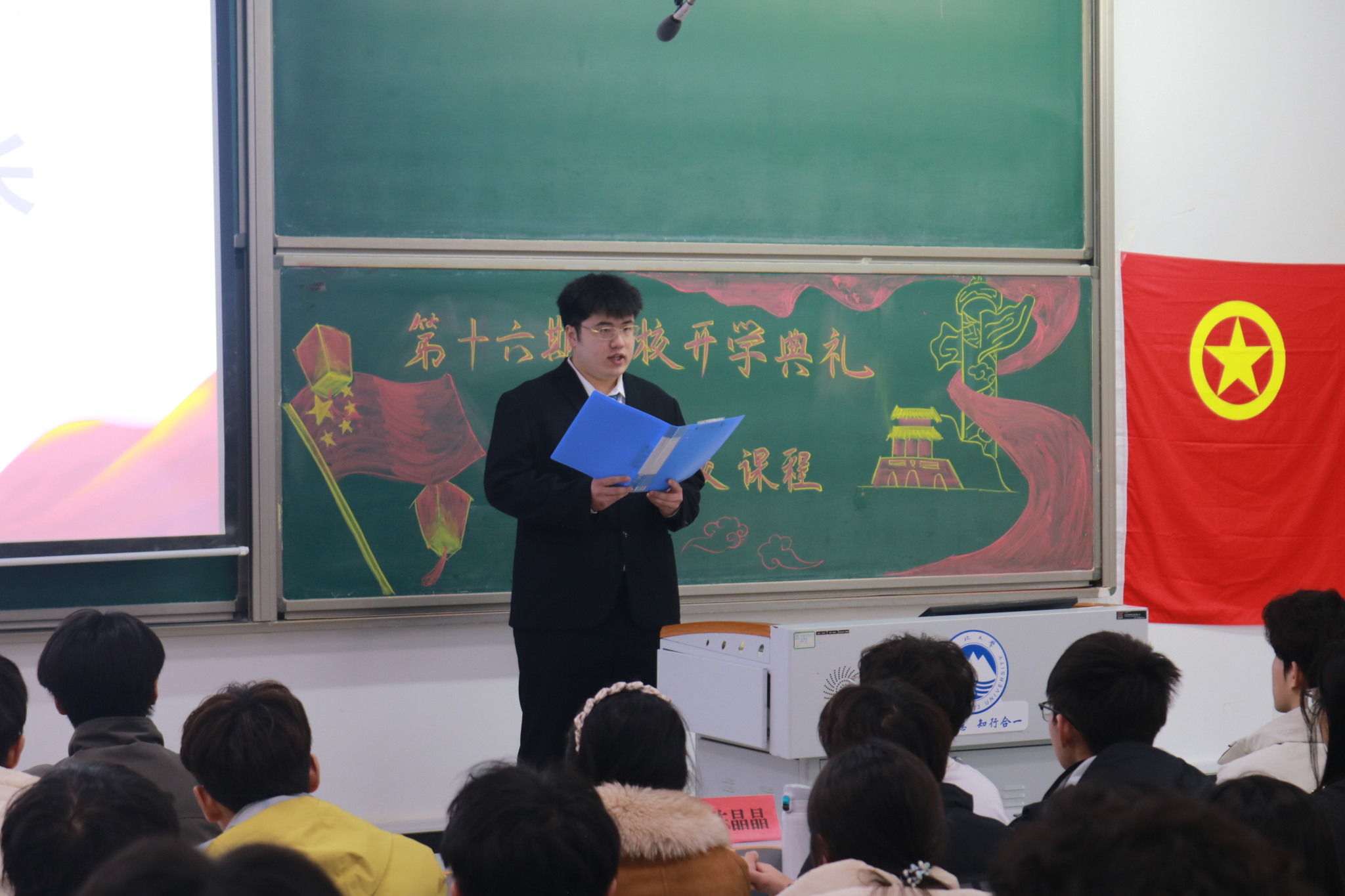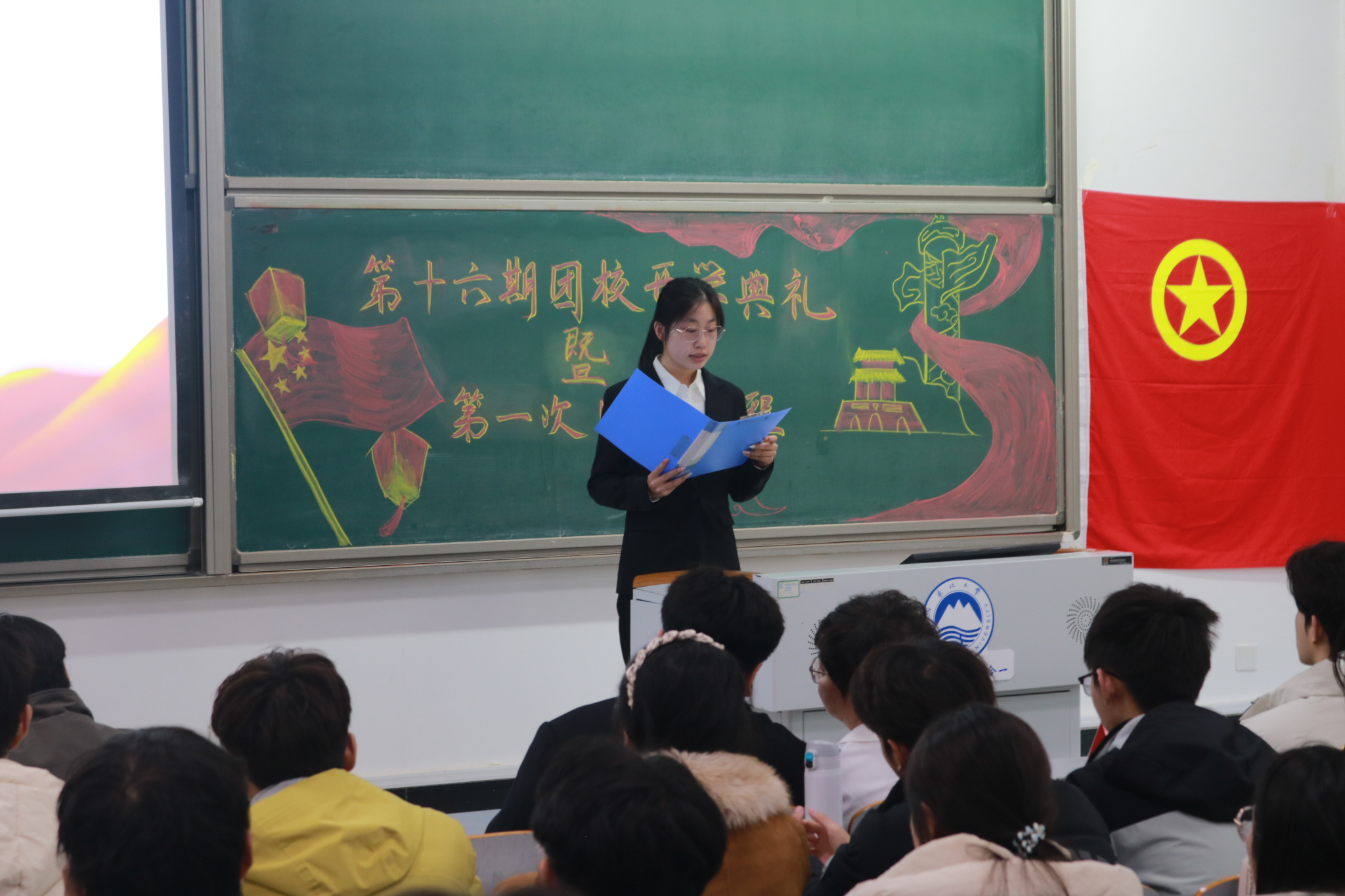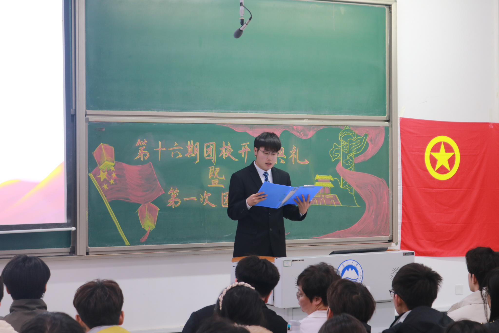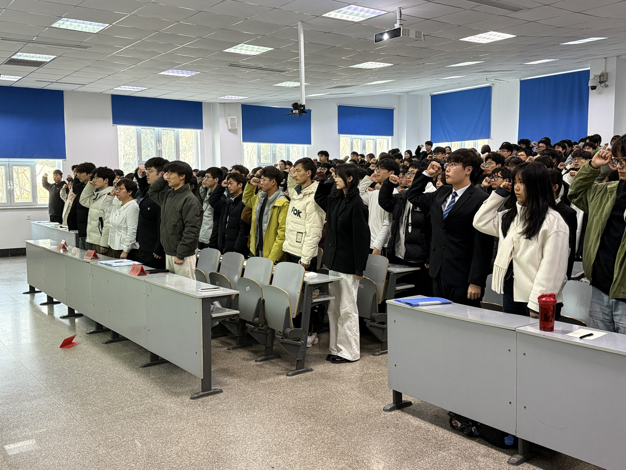 典礼伊始,全体学员起立齐唱《中国共青团团歌》,随后典礼各项议程依序进行。
