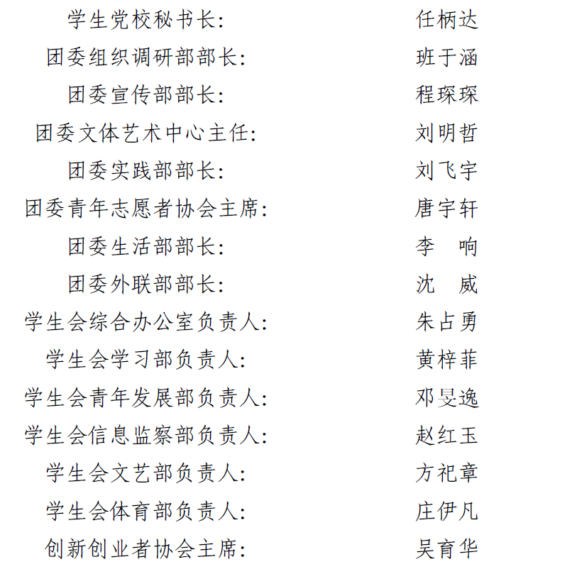 本着公开、公平、公正的原则,经学生自主申报、资格审查、组织考察、现场竞聘等环节,综合考虑、择优录取,现将米乐官网第十三届院属学生组织部门负责人拟任人选公示如下: