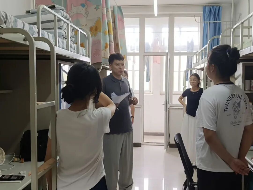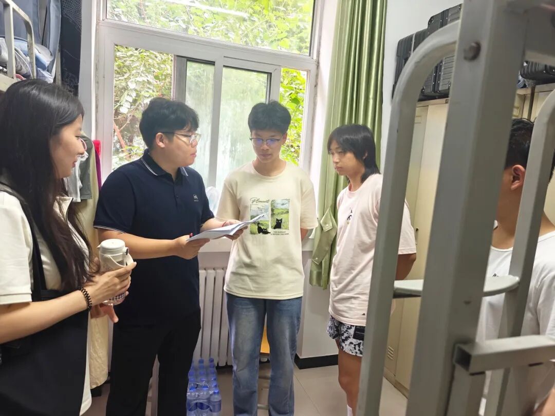 在走访过程中,老师与助导们着重强调了安全问题,询问新生宿舍入住情况。随后,老师叮嘱新生注意休息,注意秦皇岛天气变化情况,为新生解答各种问题,并鼓励新生在大学阶段努力提升自己、不负韶华。