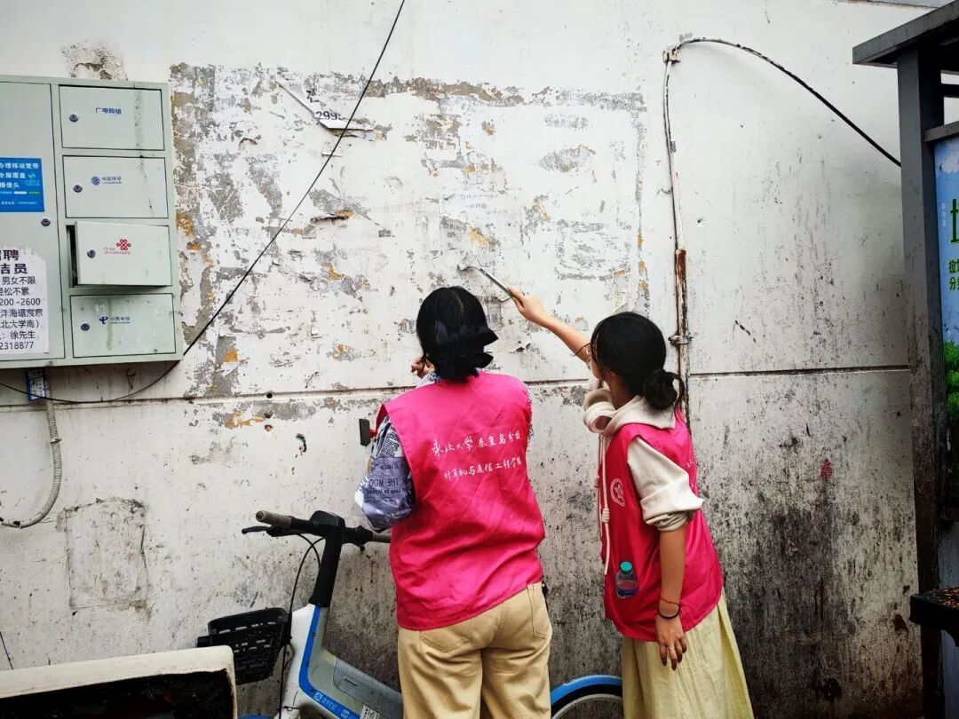 活动当天,志愿者们携带小铲子、喷壶、除漆剂等清理工具,深入美岭小区开展清除小广告等活动。在社区内,楼道、围墙以及公共设施区域的各类小广告顽固附着,严重影响了社区环境的整洁与美观。志愿者们积极深入各个区域,逐一清理广告贴纸。此次活动不仅有效改善了社区环境,还宣传了环保理念,进一步增强了居民们的环保意识。