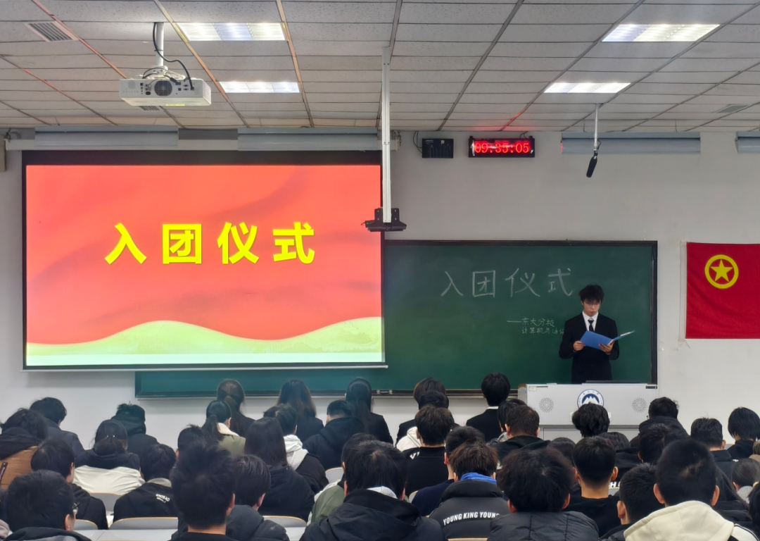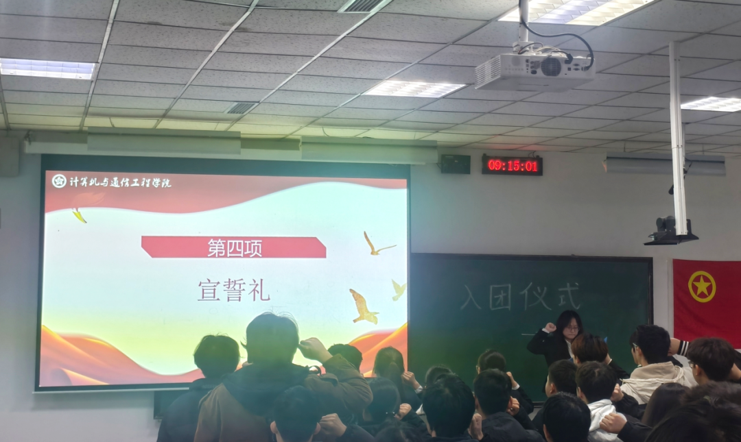 团委副书记李杨带领团员们举行入团宣誓仪式,领誓人李杨逐句诵读宣誓文字,宣誓人齐声跟读。