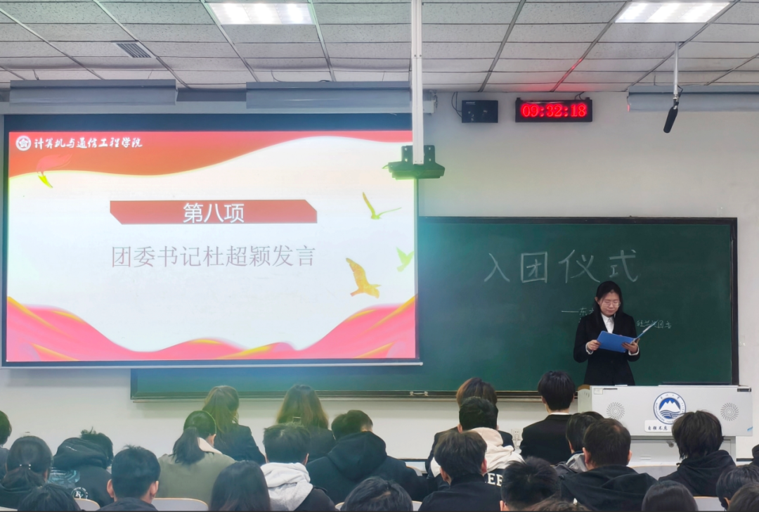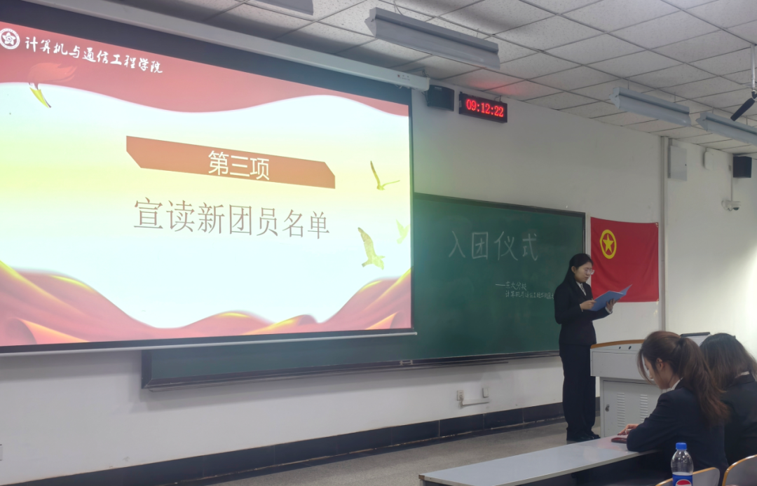 团委书记杜超颖上台宣读新团员代表名单,经团组织培养考察,共计90名先进青年被发展入团。