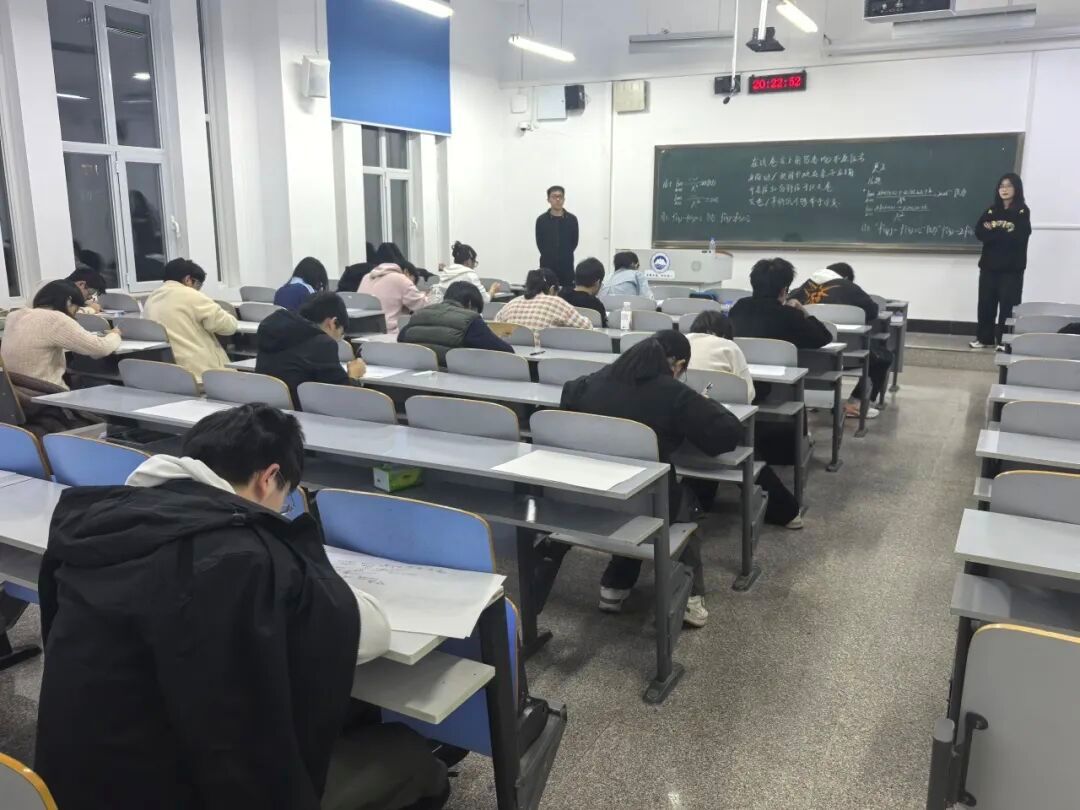 考试现场,考生们沉着冷静、专注作答。学生监考员认真履行职责,保障考试纪律。
