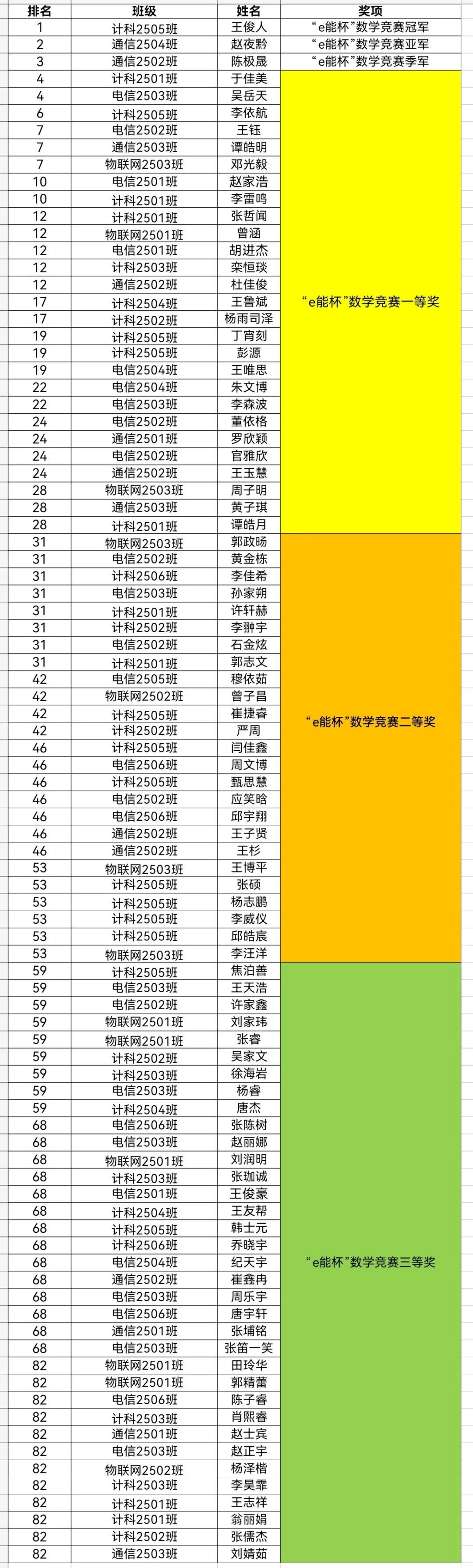 12月2日,为期三天的批阅以及核验工作结束。本次比赛斩获前三名及一、二、三等奖的同学名单如下: